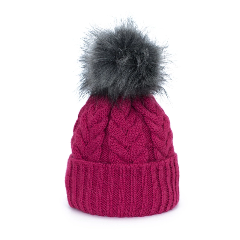 Futrzany pompon jest wykonany ze sztucznego futerka.