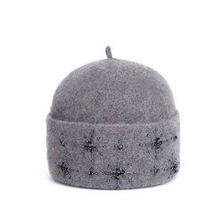 Ozdobiony motywem kraty. Wykończony drobnymi frędzelkami.