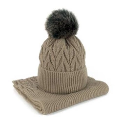 Czapkę zdobi duży pompon ze sztucznego futerka i klasyczny zimowy wzór.