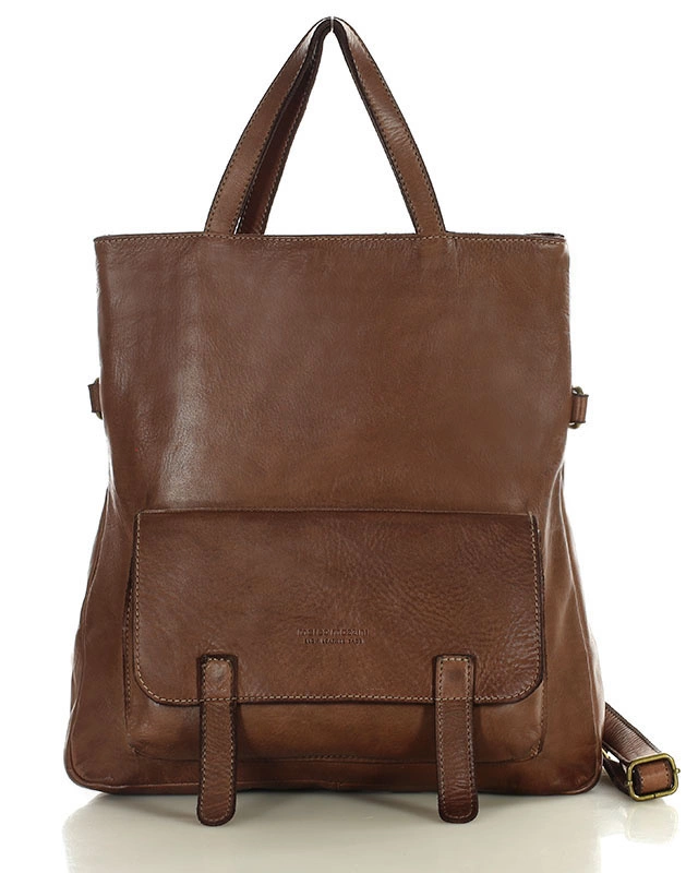 Torebka plecak z kolekcji Marco Mazzini SLOW BAG Runway w kolorze brązowym wykonana jest z naturalnej skóry licowej, bydlęcej, o gładkiej powierzchni. Skóra tego typu charakteryzuje się tym, że jest miękka i aksamitna w dotyku. Torebko plecak jest ręcznie szyty, a następnie w całości farbowany, starzony i uszlachetniany. Procesy te gwarantują długowieczny efekt skóry naturalnej oraz aksamitność w dotyku. Skóra użyta do produkcji jest odporna na obciążenia i niepowtarzalna z wyglądu.