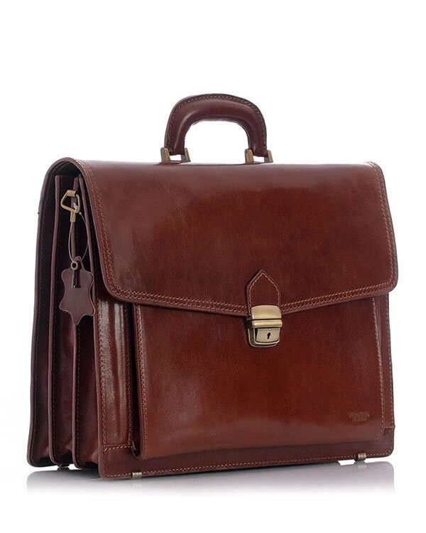 Elegancki design i precyzyjne wykonanie sprawiają, że teczka męska skórzana trzykomorowa to nie tylko praktyczny, ale także modny dodatek. Zestawiona z profesjonalnym strojem biznesowym, teczka doda każdemu mężczyźnie pewności siebie i stylowego wyglądu. Teczka skórzana została zaprojektowana w taki sposób, aby zapewnić maksymalną funkcjonalność i praktyczność. Znajdziesz w niej wiele przydatnych komór i kieszeni, które pomogą Ci zorganizować swoje dokumenty, laptopa, długopisy, karty kredytowe i inne drobiazgi. Dzięki temu będziesz miał wszystko, czego potrzebujesz, zawsze pod ręką. Teczka skórzana posiada trzy komory oraz dodatkową dużą, przednią przegrodę z organizerem na karty i długopisy. Dodatkowo z tyłu modelu znajduje się pojemna kieszeń zamykana na suwak. Mocny zamek z blokadą na kluczyk, stopki zabezpieczające dno teczki przed zniszczeniem oraz wygodny uchwyt z okuciem w kolorze mosiądzu to atuty, które zapewnią Ci wygodę i komfort w codziennym użytkowaniu. Dzięki specjalnemu paskowi proponowany model można nosić zarówno w ręku, jak i na ramieniu.