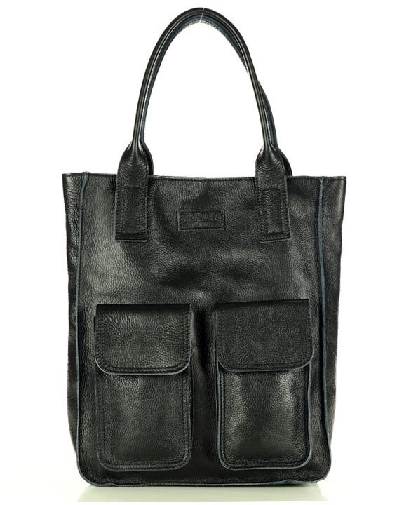 Czarna torebka damska typu shopper bag z kieszeniami – ponadczasowy KLASYK!