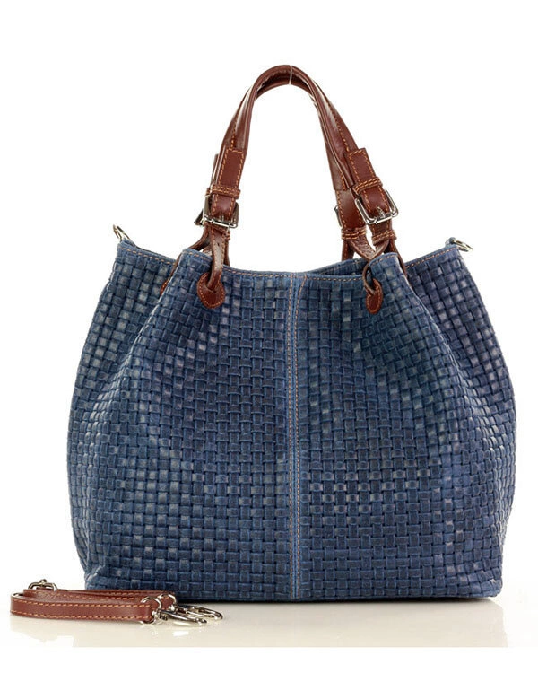 Włoska torebka damska - KUFEREK o oryginalnym plecionym tłoczeniu nawiązuje do modnych torebek koszyków. Dzięki wykonaniu z naturalnej skóry, będzie odpowiednią torebką na cały rok, nie tylko w okresie letnim. Dostęp do wnętrza torby zamykany na zapięcie magnetyczne. W środku znajdziesz dwie komory dzielone zamkniętą przegrodą. Dodatkowo w środku torby znajdują się kieszonki: otwarta i zamykana na suwak. Komfort noszenia dopalania regulacja rączek oraz możliwość dopięcia długiego paska. Solidne skórzane rączki dają gwarancję, że torba wytrzyma nawet większe ciężary. Torebka koszyk damski pasuje zarówno do oficjalnych, jak i do luźnych stylizacji. Modne wzornictwo i funkcjonalność sprawi, że chętnie będziesz po nią sięgać. Jeden z naszych bestsellerowych modeli w kategorii średnia torebka damska.