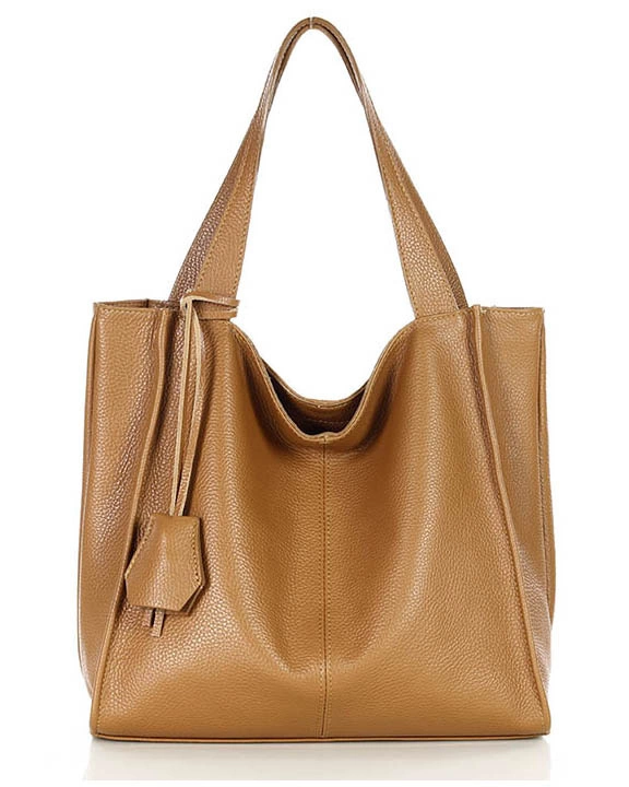 Modna torebka damska skórzany shopper bag - MARCO MAZZINI Portofino Max camel