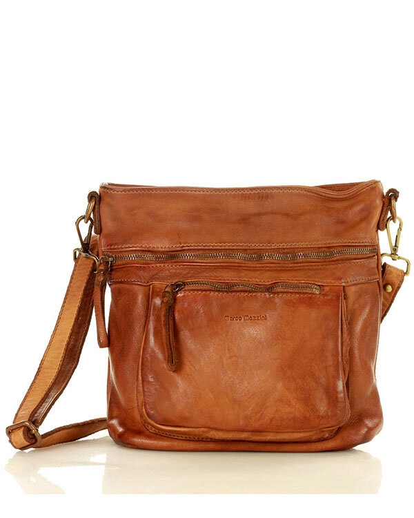 Opinie o Torebka skórzana funkcjonalna listonoszka z kieszeniami old pelle classica lavata - MARCO MAZZINI camel