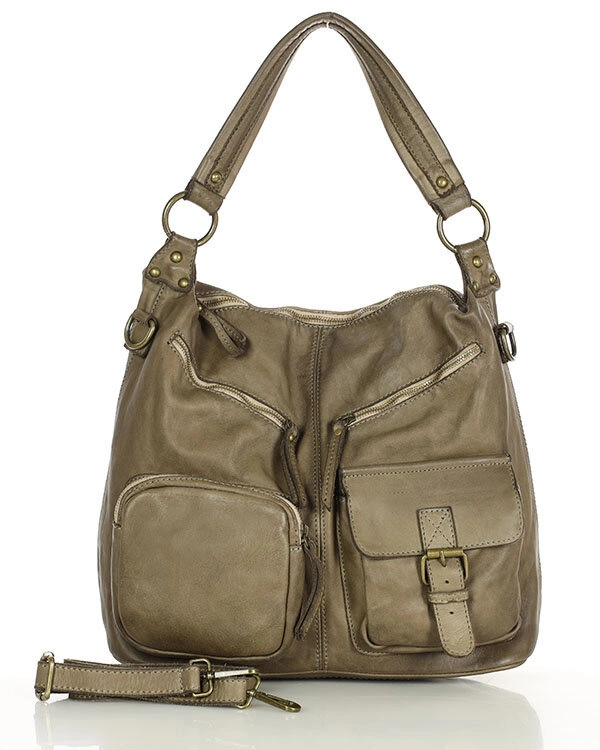Opinie o Torebka skórzana na ramię pockets old pelle lavata - MARCO MAZZINI beżowy taupe