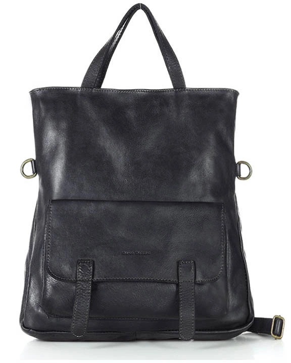 Skórzana torebka plecak z kieszenią z przodu - MARCO MAZZINI czarny