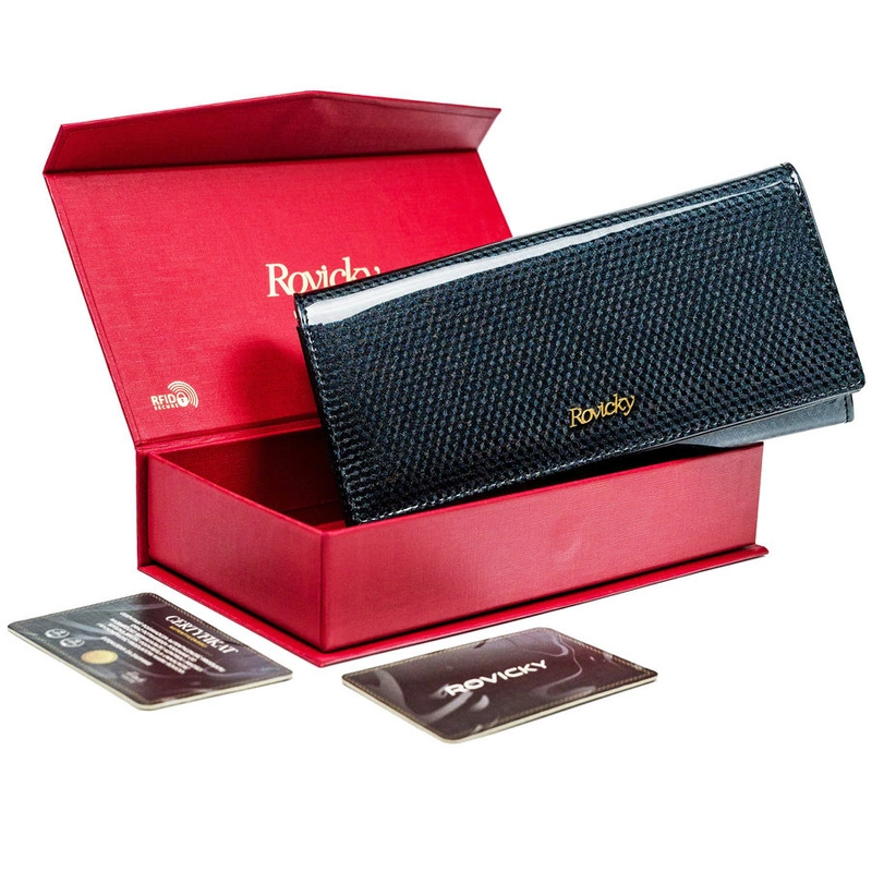 Elegancki damski portfel Rovicky w klasycznej, lakierowanej odsłonie