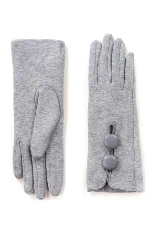 Eleganckie rękawiczki ozdobione dwoma dużymi guzikami.