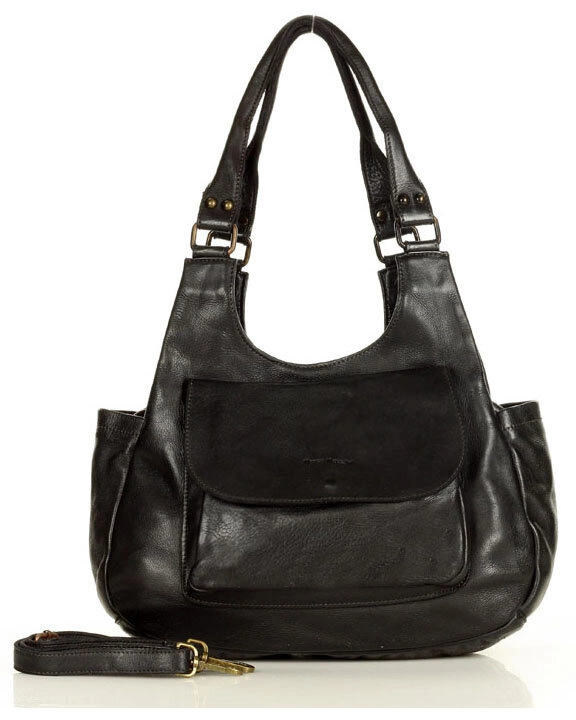 Opinie o Włoska torebka skórzana z kieszenią z przodu retro bag handmade - MARCO MAZZINI czarny
