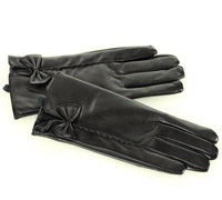 Rękawiczki damskie z eko skóry z kokardką - czarne