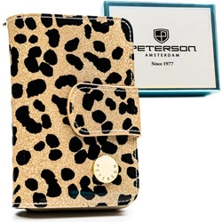 Złoty, pionowy portfel damski ze skóry ekologicznej i naturalnej w cętki - Peterson