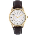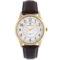 Zegarek męski kwarcowy biało-złoty klasyczny brązowy skórzany pasek C402