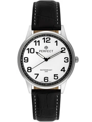 Zegarek męski kwarcowy klasyczny skórzany pasek z białym obszyciem Perfect C410