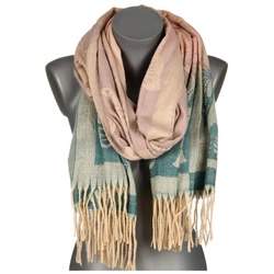 Różowy jesienny duży Szalik Damski ciepły szal w kratę frędzle szal-63