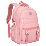 Modny plecak szkolny z poliestru w różowym kolorze, zawieszony na regulowanych szelkach - Peterson