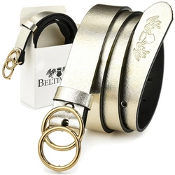 Beltimore skórzany damski pasek złoty 3 cm U98 : Kolory - żółty, złoty, Rozmiar pasków - r.100-115 cm