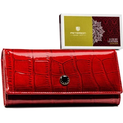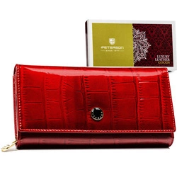 Pojemny, czerwony portfel damski ze zwierzęcym tłoczeniem na klapie - Peterson