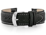 Pasek skórzany do zegarka W39 - czarny/biały 24mm