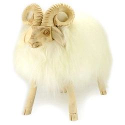 Piękny, duży baranek wykonany z drewna i skóry