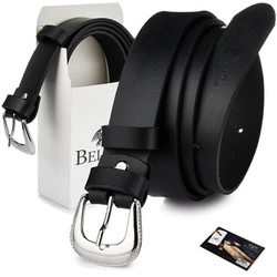 Beltimore skórzany damski pasek czarny bezniklowy 3 cm U68 : Kolory - czarny, Rozmiar pasków - r.110-125 cm