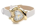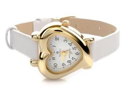 Zegarek prezent komunijny biały pasek skórzany koperta w serce Perfect D46