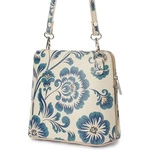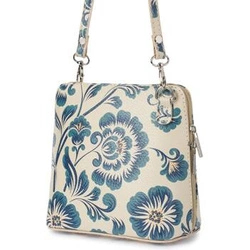 Torebka mała listonoszka skórzana modna włoska Vera Pelle niebieskie kwiaty K03