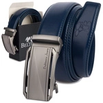 Pasek męski skórzany klamra automatyczna czarny Beltimore A51 : Kolory - granatowy, Rozmiar pasków - r.100-115 cm