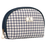 Beżowo-granatowa kosmetyczka damska w kratę zamykana suwakiem - Rovicky