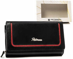 Zestaw prezentowy: duży, skórzany portfel damski, brelok i długopis — Peterson