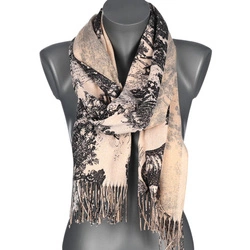 Beżowy piękny elegancki szalik damski szal ciepły modny wzór AX-141
