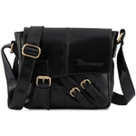 vp1030 czarny Zgrabna, śliczna listonoszka skórzana, złote okucia