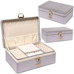 Elegancka szkatułka na biżuterię w srebrnym kolorze, zamykana zatrzaskiem - Peterson
