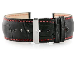 Pasek skórzany do zegarka W64 czarny/czerwony 24mm