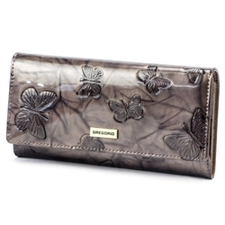 Gregorio damski portfel podłużny skóra naturalna wzór motyle lakierowana