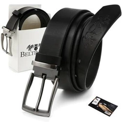 Pasek skórzany męski do spodni szeroki czarny Beltimore A75 : Kolory - czarny, Rozmiar pasków - r.105-120 cm