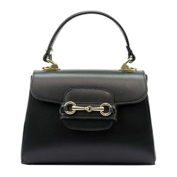vp1030 czarny Zgrabna, śliczna listonoszka skórzana, złote okucia