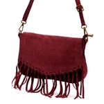 Skórzana zamszowa damska listonoszka z frędzlami i dżetami na ramię Luka