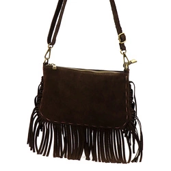 Zamszowa damska listonoszka torebka skórzana przez ramię z frędzlami Luka