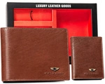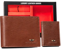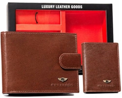 Zestaw prezentowy: elegancki skórzany portfel, etui na karty i brelok - Peterson