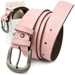 Beltimore skórzany damski pasek do spodni 4 cm różowy A70 : Kolory - różowy, Rozmiar pasków - r.85-100 cm