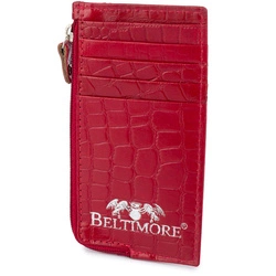 Etui na dokumenty karty czerwone skórzane skóra croco slim Beltimore J06