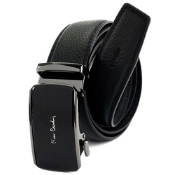 Pierre Cardin czarny męski pasek do spodni skórzany klamra samozaciskowa