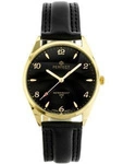 Zegarek męski kwarcowy czarno-złoty klasyczny skórzany pasek C402
