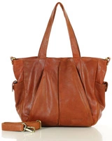 Miękka torebka skórzana shopperka na ramię - MARCO MAZZINI - brąz camel