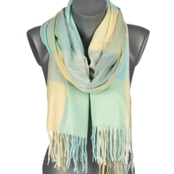 Miętowy Duży Szalik Damski bawełniany ciepły szal w kratę frędzle AX-13
