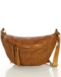 Duża torebka nerka półksiężyc skóra pleciona - MARCO MAZZINI brąz camel