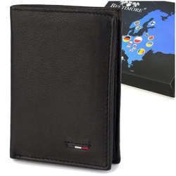 Portfel skórzany męski mały pionowy z flagą czarny RFiD Beltimore D48