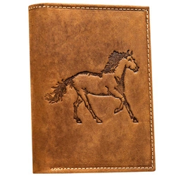 Duży, skórzany portfel męski w kolorze brązowym z tłoczeniem w kształcie konia