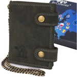 Męski portfel skórzany czarny nubuk skóra z łańcuchem Beltimore R78